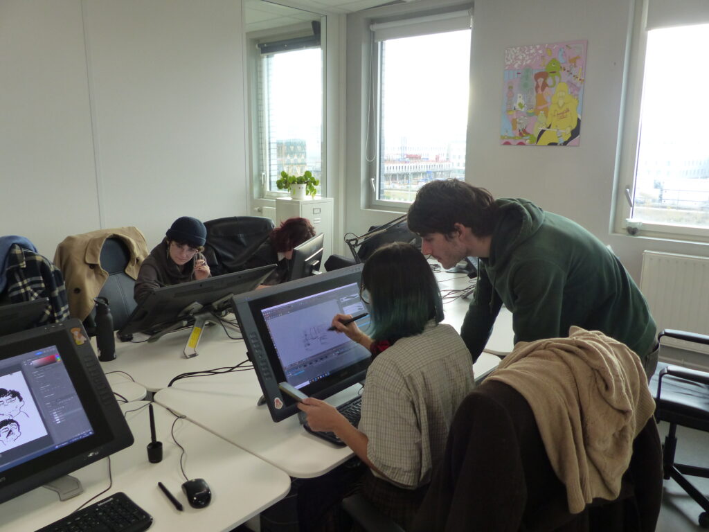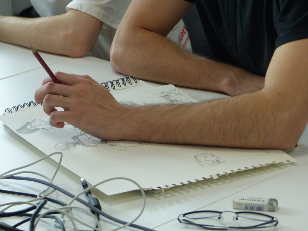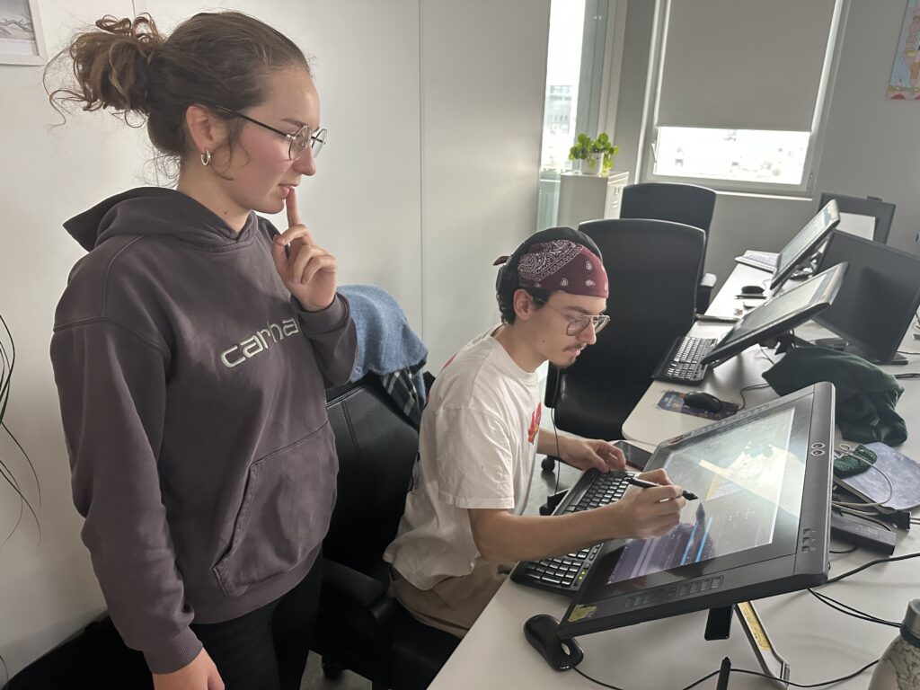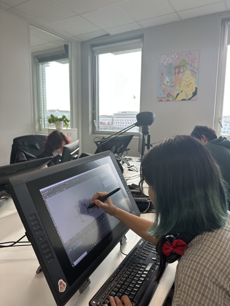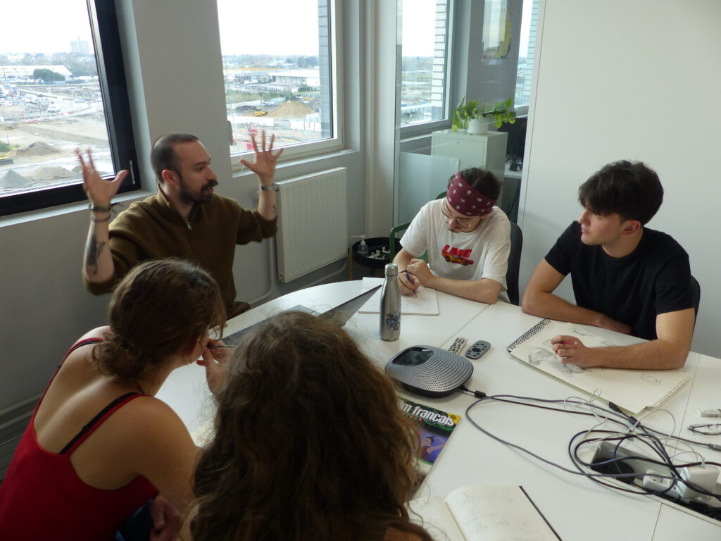 Répartis en équipes, les 16 étudiants en dernière année de la formation Animation 2D ont suivi la chaîne de production complète : écriture de la séquence, story-board, animation, compositing, et rendu. Accompagné par le studio d’animation partenaire L’Incroyable Studio, le défi animé a placé la contrainte temporelle au cœur d’un exercice professionnel : décisions visuelles rapides, itérations et optimisation pour tenir le délai. Le projet a été supervisé par Martin Gremaud (ancien étudiant de Pivaut Nantes) qui a pu accompagner les étudiants talentueux : Toriki Apeang, Matys Bueno, Morgane Carlos, Eva Chedozeau, Mila Dinić, Enzo Figueiredo, Natis Girard, Benjamin Jouin, Maëlys Kerdilès, Romain Lavigne, Valentin Lecointre, Cécile Lutz, Mathieu Payet, Lilia Pichon, Eulalie Pinatel, Gabriel Tain. L’étudiante Florence Carlus a couvert l’évènement avec un reportage dessin du marathon !