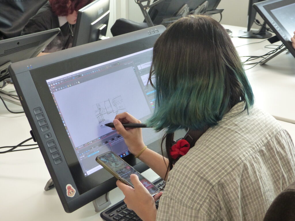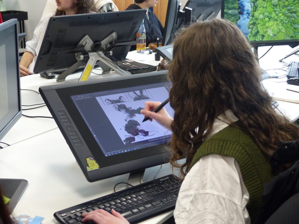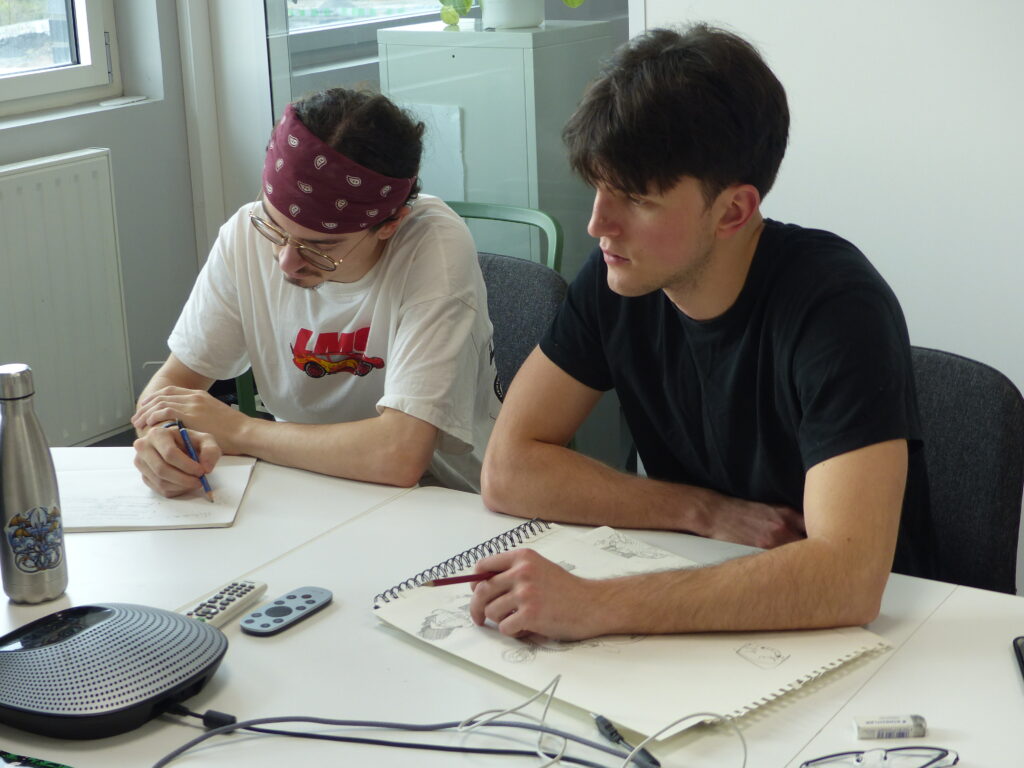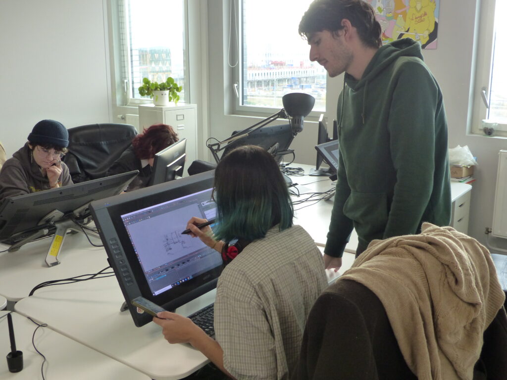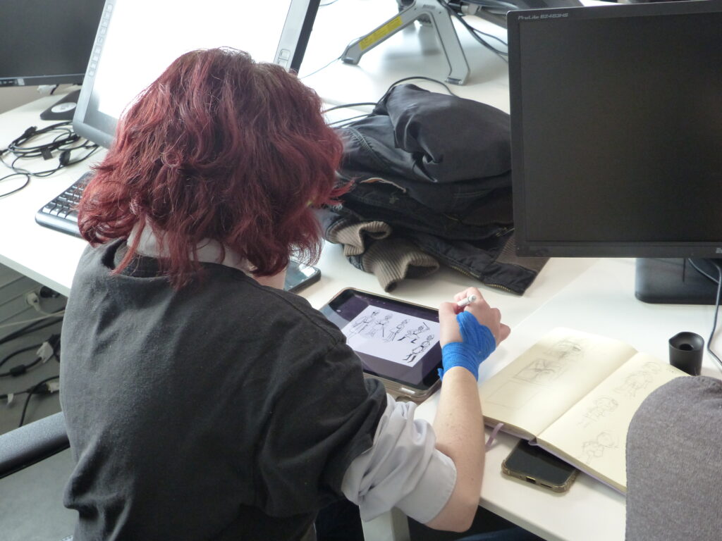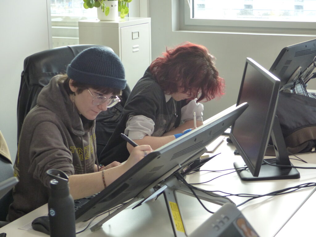 Répartis en équipes, les 16 étudiants en dernière année de la formation Animation 2D ont suivi la chaîne de production complète : écriture de la séquence, story-board, animation, compositing, et rendu. Accompagné par le studio d’animation partenaire L’Incroyable Studio, le défi animé a placé la contrainte temporelle au cœur d’un exercice professionnel : décisions visuelles rapides, itérations et optimisation pour tenir le délai. Le projet a été supervisé par Martin Gremaud (ancien étudiant de Pivaut Nantes) qui a pu accompagner les étudiants talentueux : Toriki Apeang, Matys Bueno, Morgane Carlos, Eva Chedozeau, Mila Dinić, Enzo Figueiredo, Natis Girard, Benjamin Jouin, Maëlys Kerdilès, Romain Lavigne, Valentin Lecointre, Cécile Lutz, Mathieu Payet, Lilia Pichon, Eulalie Pinatel, Gabriel Tain. L’étudiante Florence Carlus a couvert l’évènement avec un reportage dessin du marathon !