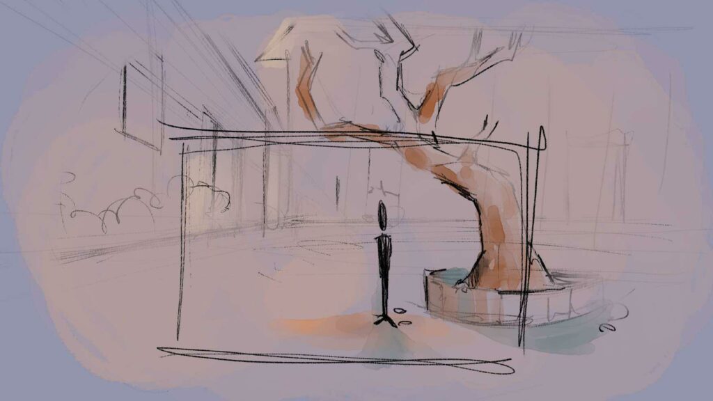 « Les origines de ce film viennent prendre racine dans nos propres expériences«  expliquent les réalisateurs Zachary Boes et Lena Legaz sur la genèse de leur court métrage d’animation. Le personnage principal est né de cette recherche d’un sujet intime à hauteur d’enfant devenu jeune adulte à affronter l’avenir. L’économie du récit où chaque souvenir doit être révélateur, témoigne d’un travail d’écriture exigeant et essentiel sur un format aussi court.
