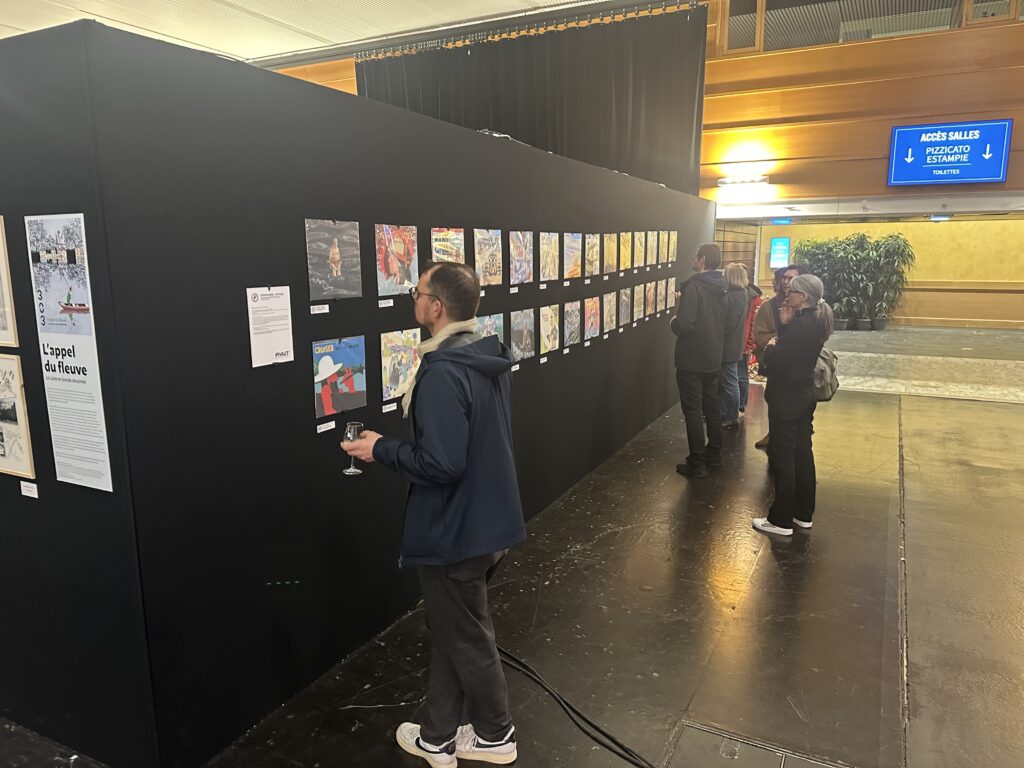 Trente étudiants de Pivaut ont été invités à concevoir 30 couvertures de disques 33 tours sur le thème « Les Fleuves ». Le travail pratique, plastique et conceptuel donnera lieu à une collection exposée dans le hall d’entrée de la Cité des Congrès, là même où se tiennent les concerts de la Folle Journée. Accessible aux spectateurs détenteurs d’un billet pour les concerts, cette vitrine rapprochera l’univers des arts graphiques et celui de la musique classique.