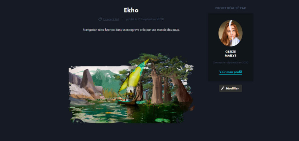 Les profils des étudiants sont également accessibles. Ils permettent de prendre connaissance de leurs CV, leurs parcours, les liens vers sites internets où l’on peut découvrir leurs créations (comme artstation.com) ou vers leurs profils instagram, etc…
